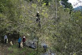 호두나무를 장대로 두드려 자연스럽게 떨어뜨리고,